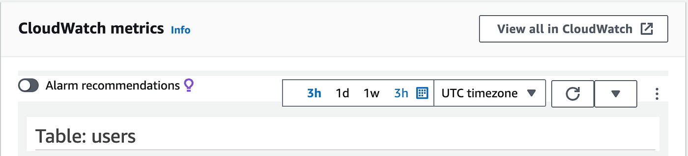 In CloudWatch, you’ll be redirected automatically to your table’s metrics.