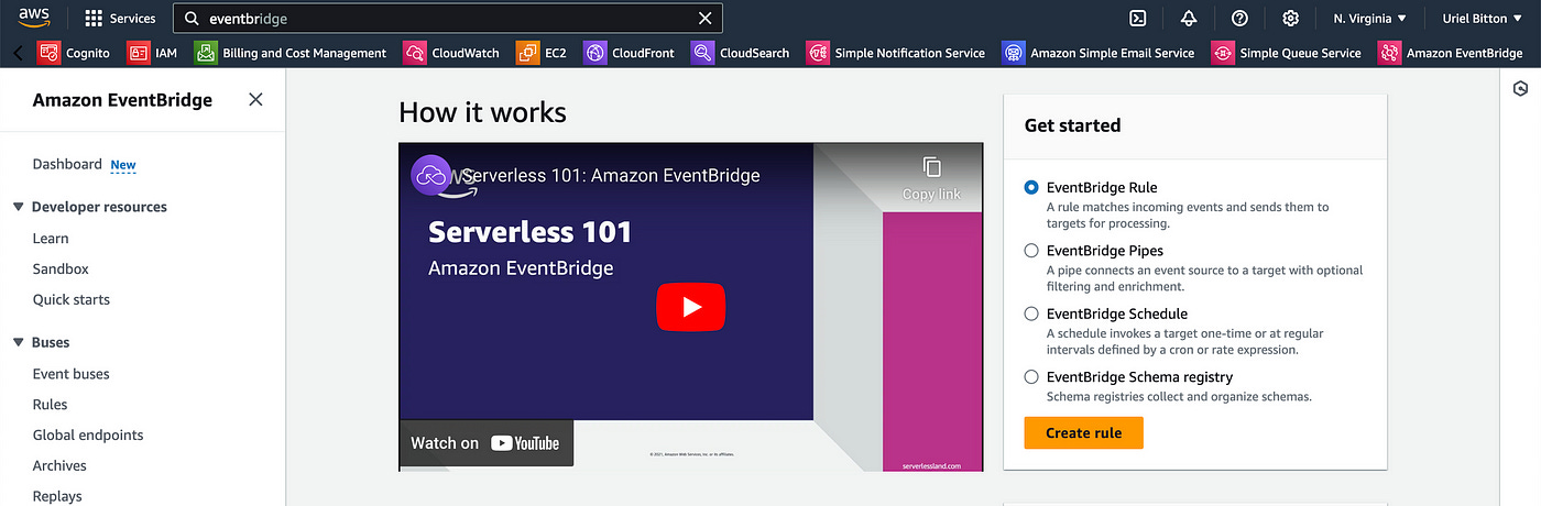 With the option “EventBridge Rule” selected, click on the Create rule button.