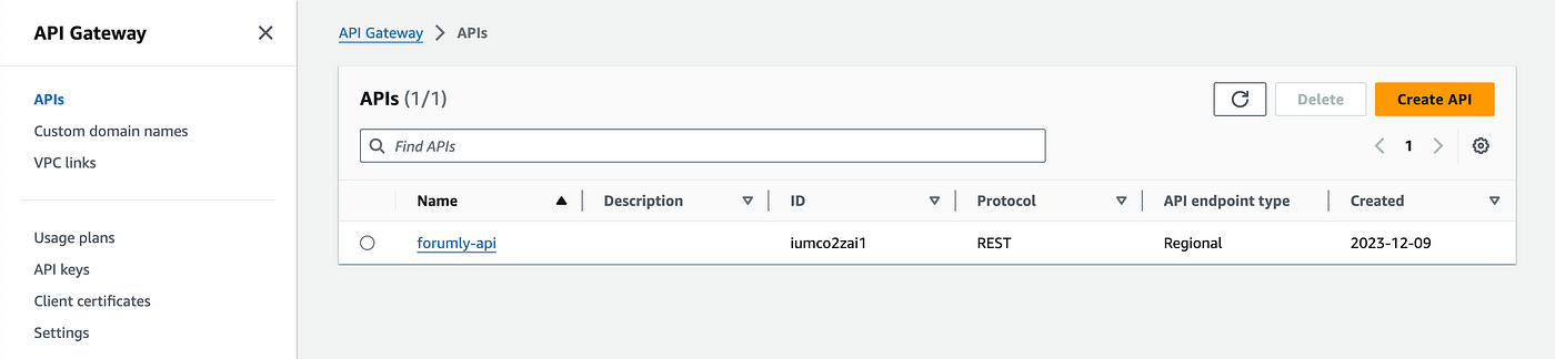 In your AWS console, head over to the API Gateway service.