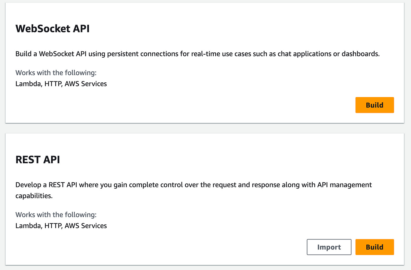 API Gateway is a service offered by AWS that lets you build, manage, and deploy different types of APIs (e.g. REST, HTTP, WebSocket) in a matter of minutes.