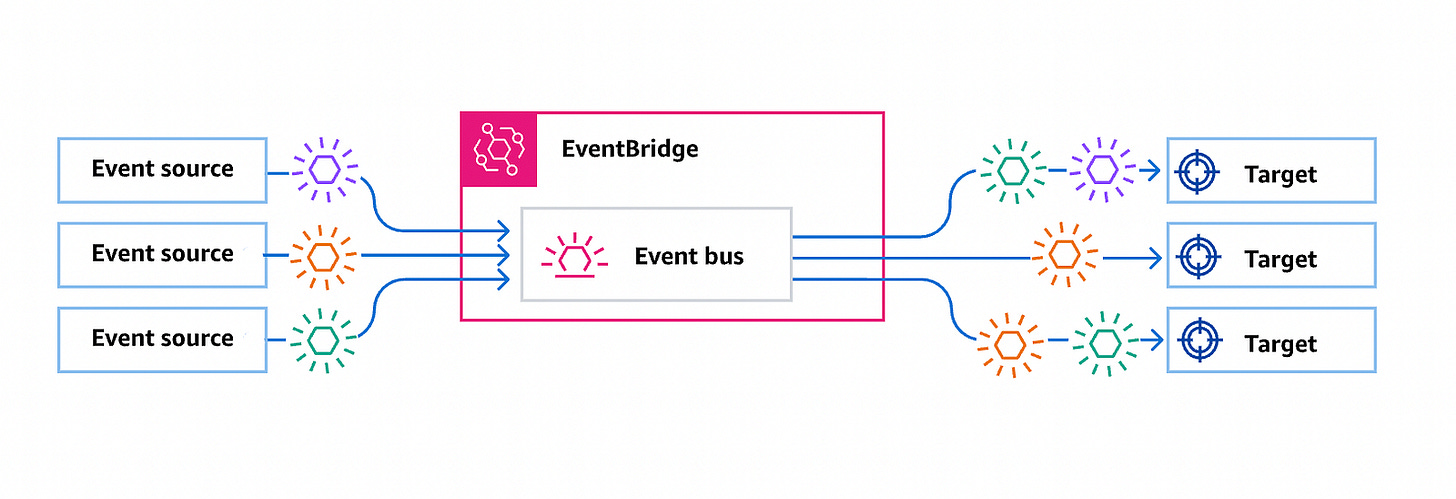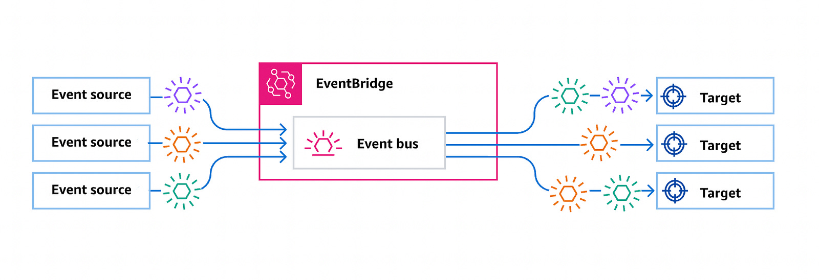 Here, EventBridge acts as an event router to multiple targets: it receives the upload event and applies routing rules to determine which services should be triggered next.