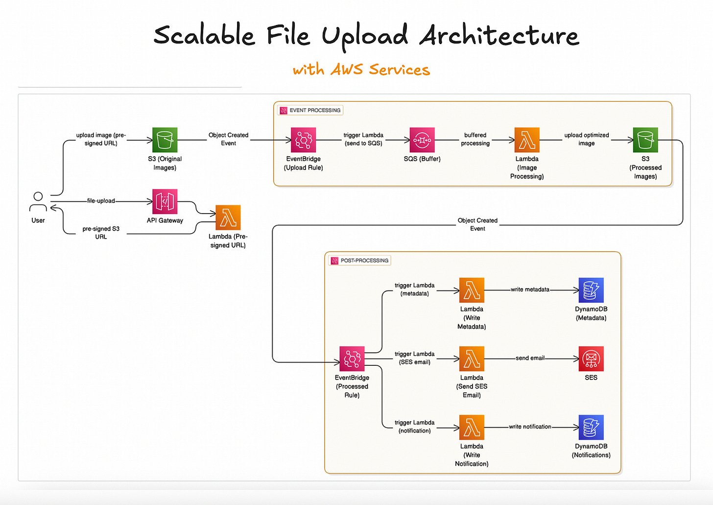 In this article, I’ll guide you through my strategy of this preemptive architectural design that will support thousands of image upload requests per second. I’ll also break down each component and explaining how it fits into the bigger picture.