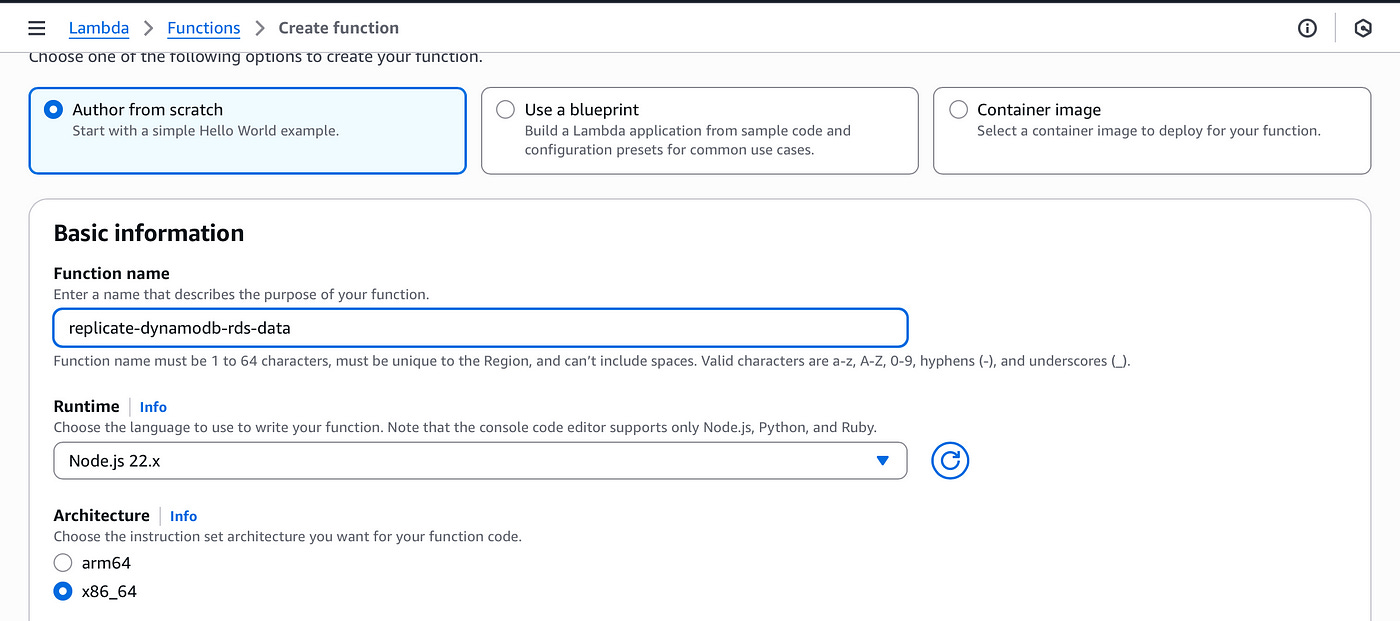 Name the function “replicate-dynamodb-rds-data”
