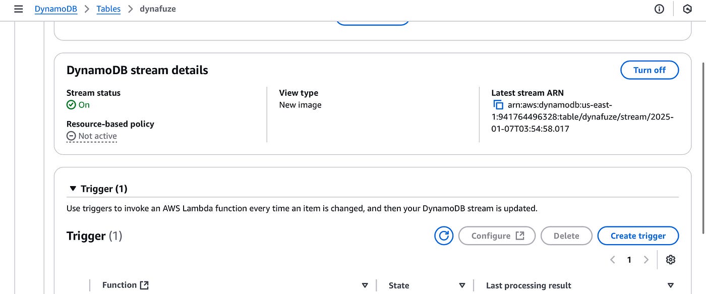 Scroll down to the DynamoDB stream details section.