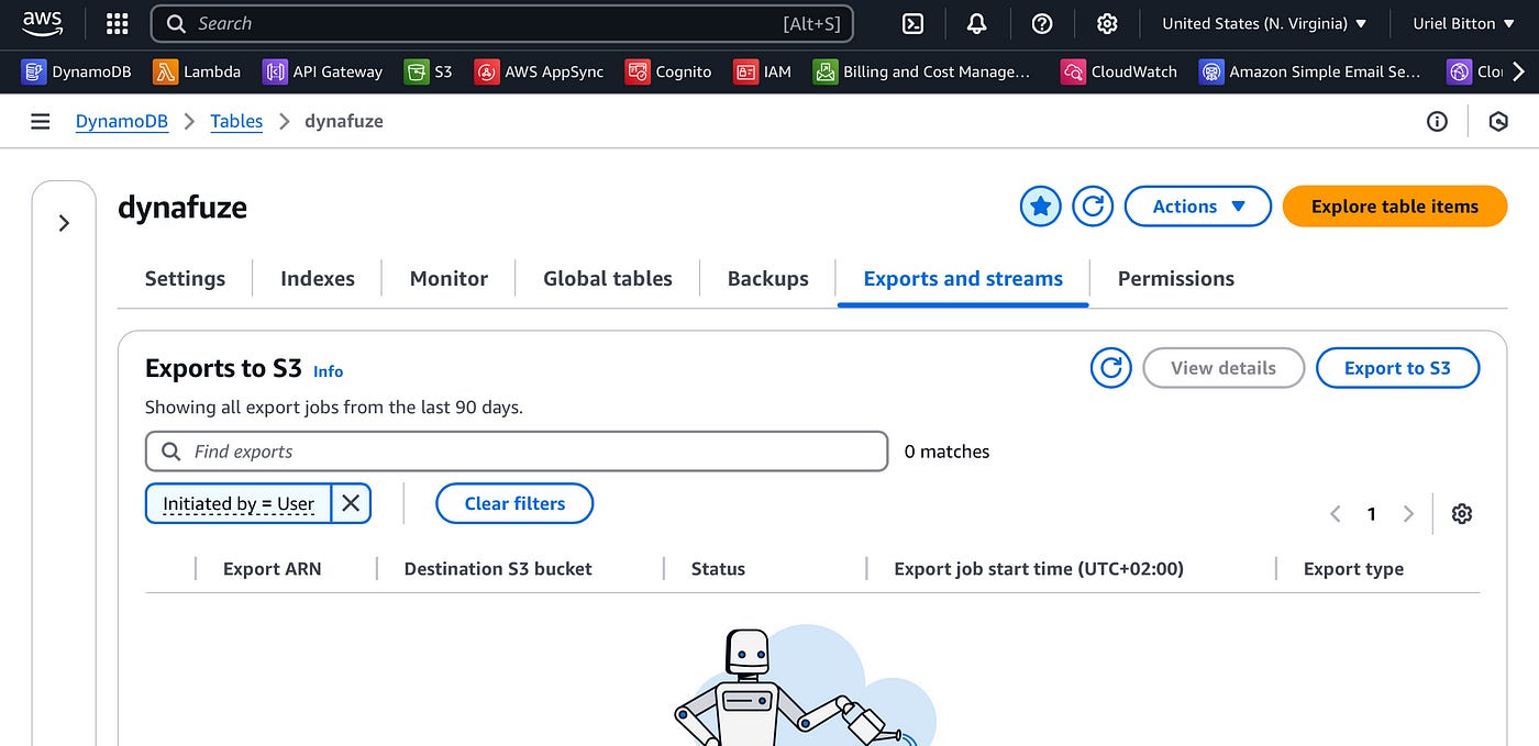 In the AWS console, head over to the DynamoDB service and select your origin table.