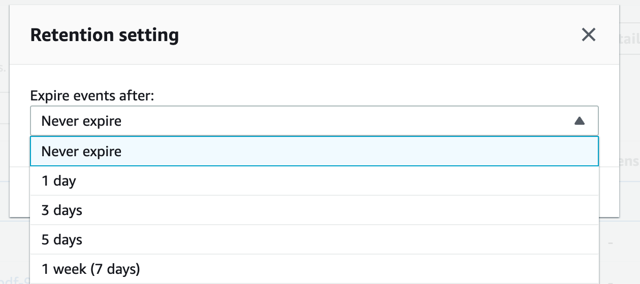 Once you make a selection you can go ahead and click on save. A warning will appear. Confirm if you are ok with it and that’s all you need to do on your end — AWS will automatically delete the data after your specified retention period.